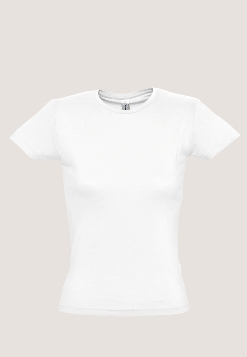 Camiseta básica manga corta mujer miss, sols, 100% algodón, confort, impresión digital personalizada, serigrafía, vinilo, transfer.