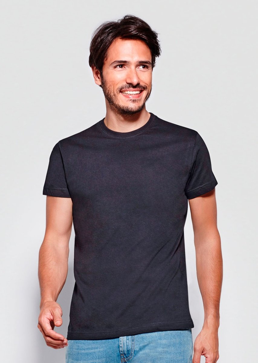 Camiseta de manga corta Roly Braco, confeccionada con tejido en galga fina y acabado compactado. Cuello redondo con 4 capas, cubrecosturas reforzado en cuello y hombros. Costuras laterales.