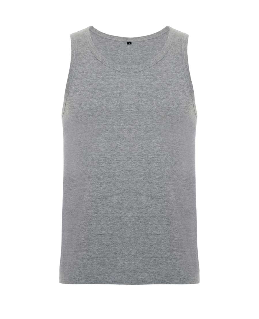 Camiseta de tirantes anchos Roly Texas, corte semientallado, ribeteado en punto liso en escote y sisa. Costuras laterales remalladas a 4 hilos dándole mayor durabilidad.