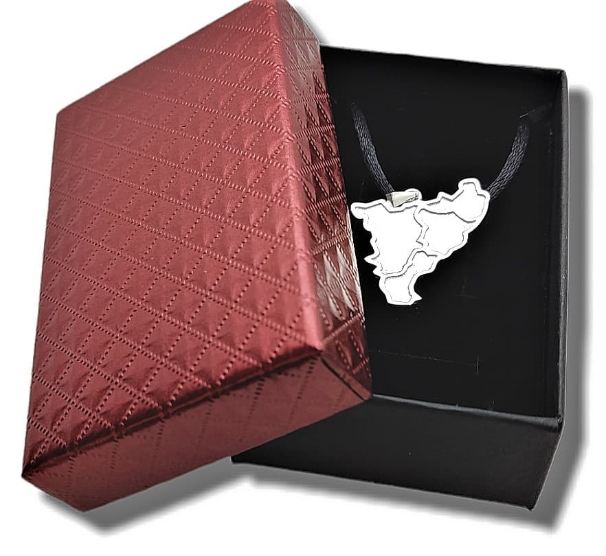 Colgante en plata de ley 925 con la forma del mapa de Catalunya y cordón textil negro.