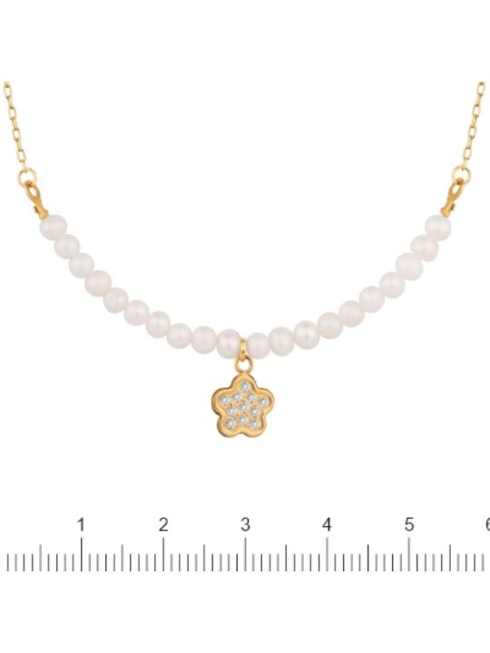 Collar cadenas perlas y colgante de flor.