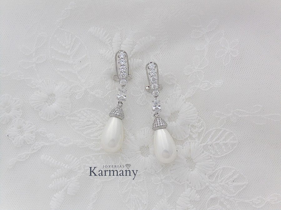 - Pendientes realizados en Plata de Ley 925 y perla natural, articulados en 3 piezas