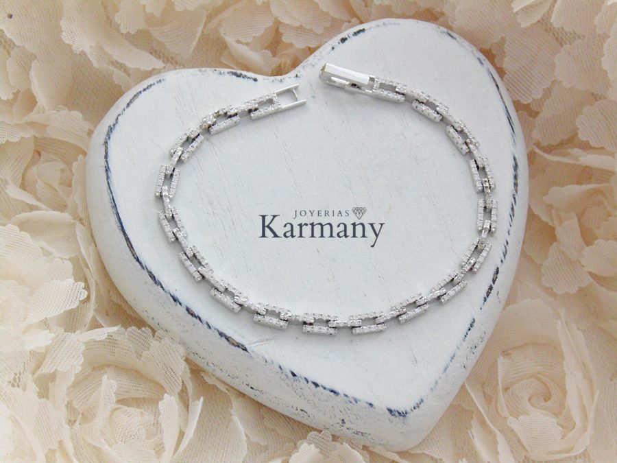 • Pulsera realizada en plata, eslabones rectangulares cuajados de circonitas.