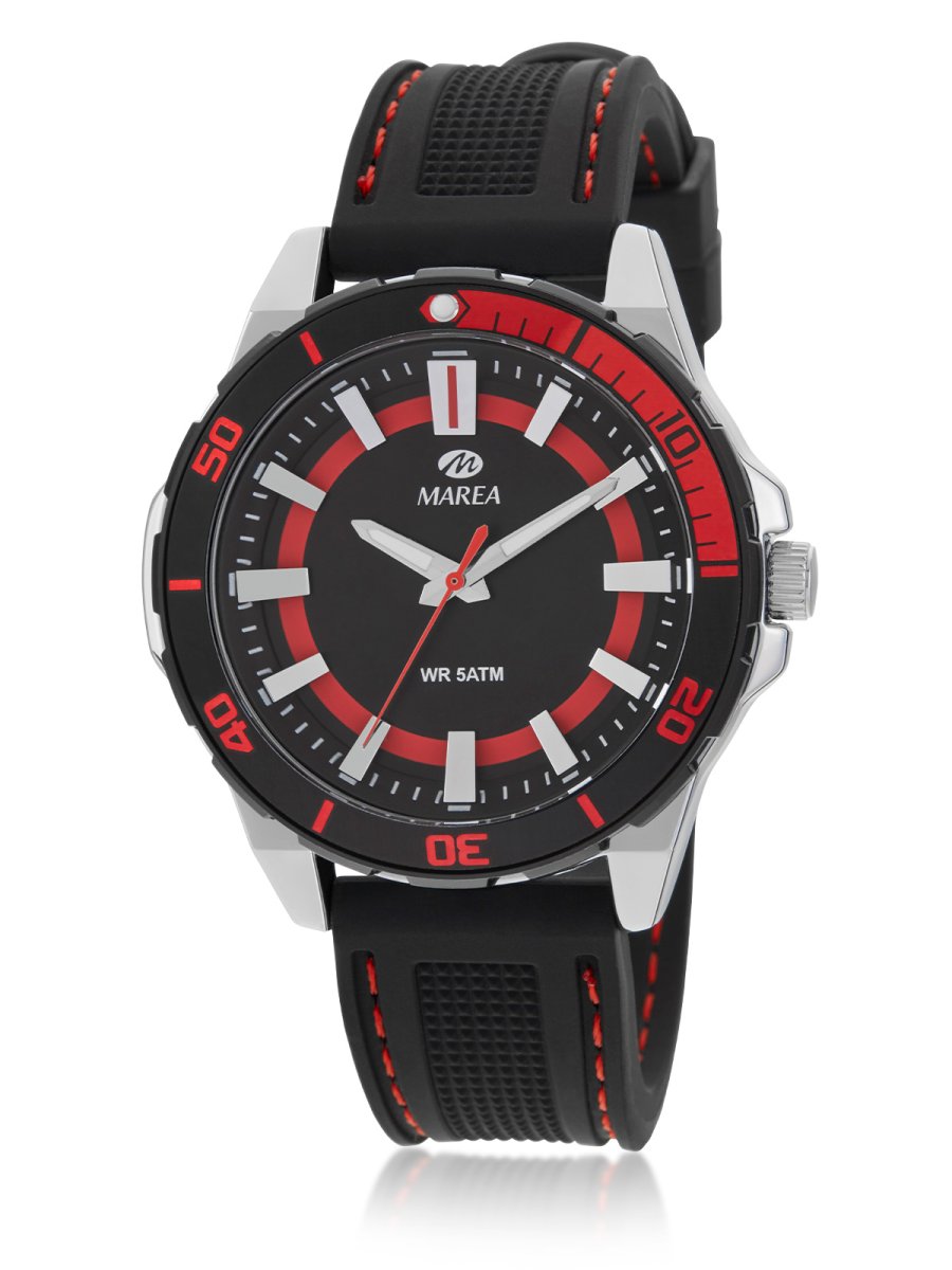 Material Brazalete: Silicona color negro con pespunte en rojo