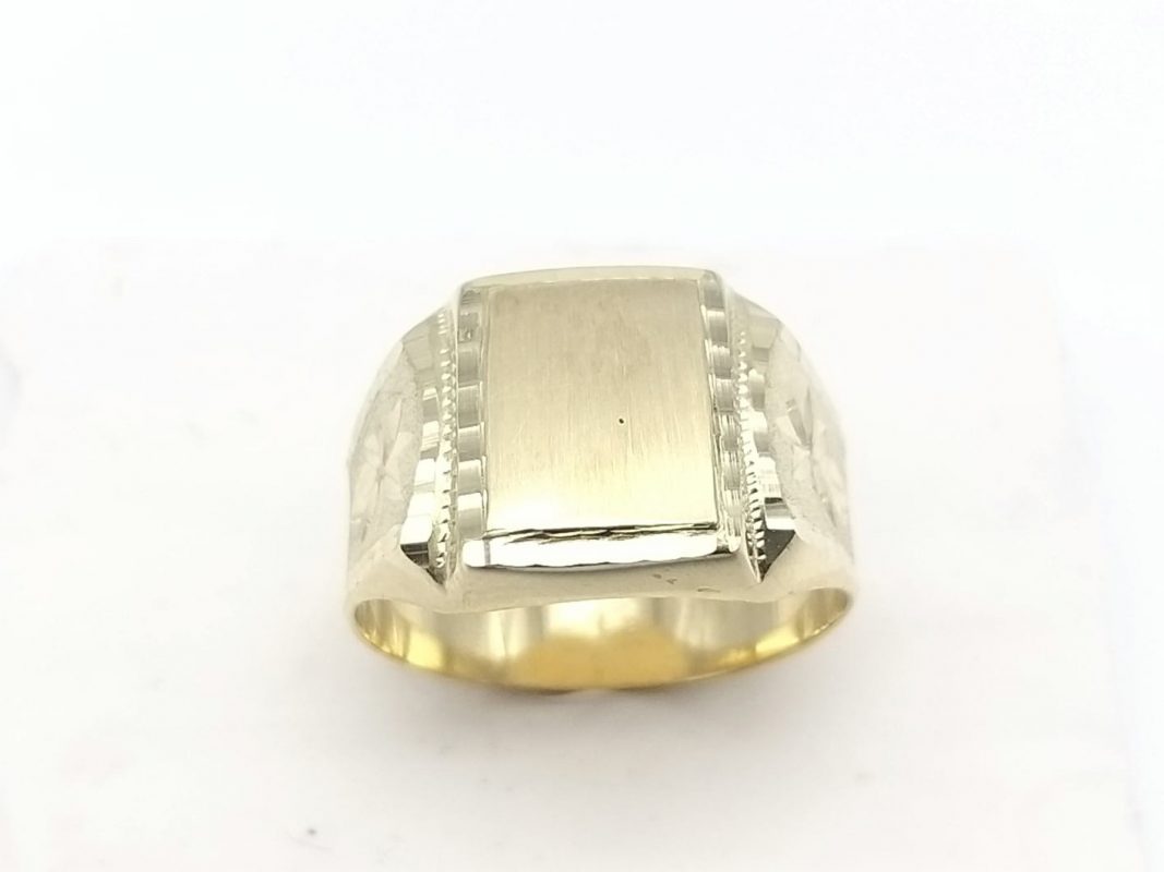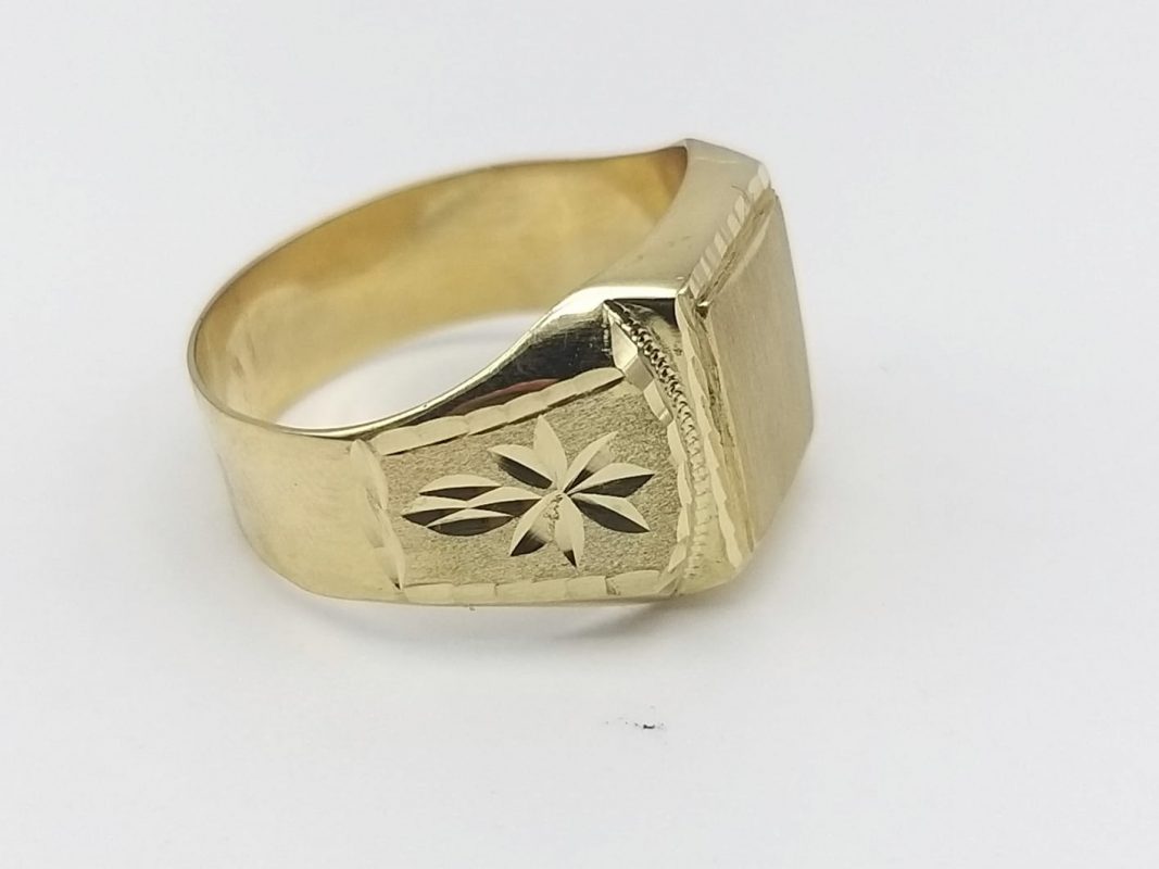 Sello en oro de 18 kilates, con cara para grabar rectangular de 10x8mm, laterales tallados, peso 4.30grs.