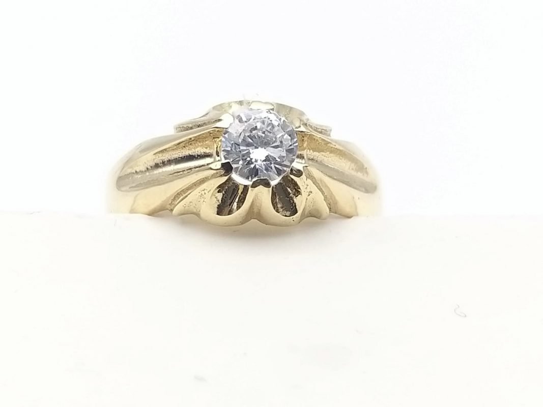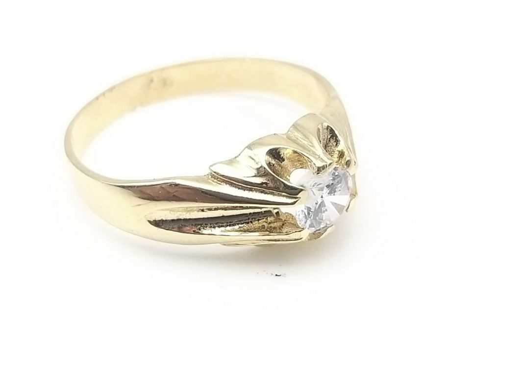 Solitario en oro de 18 kilates, con circonita de 5mm, peso 3.60grs.