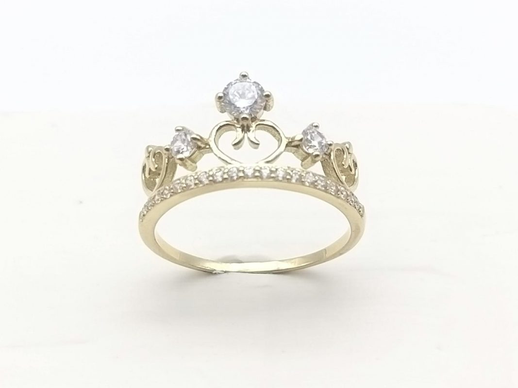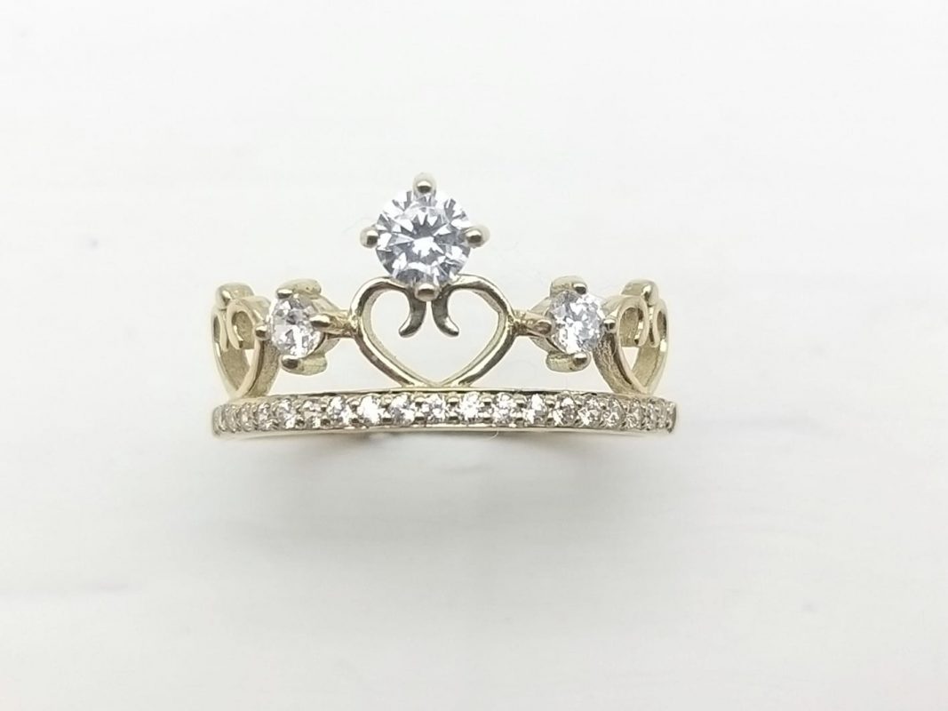 Sortija en oro de 18 kilates, con forma de corona de 11mm de ancho con circonitas.