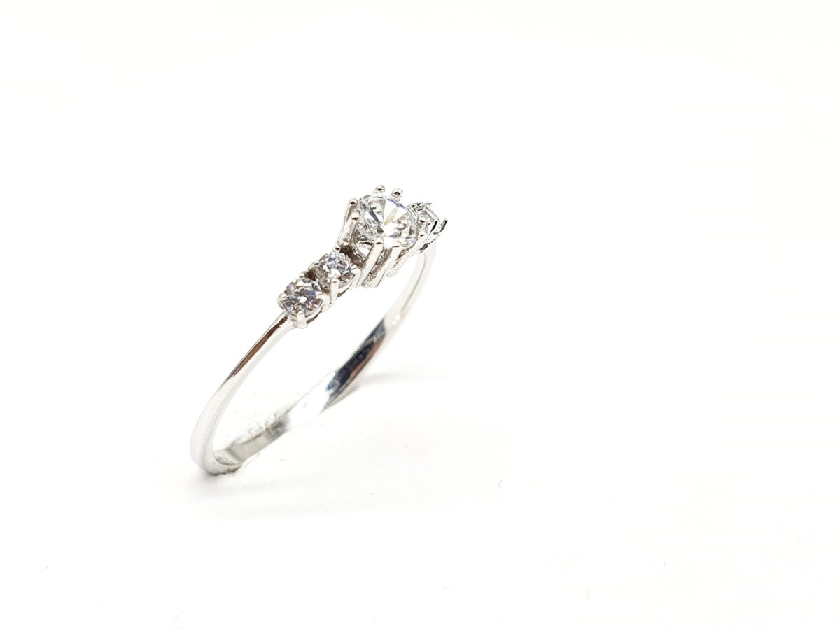 Sortija en oro blanco de 18 ktes, con circonita central de 3.75mm y circonitas de 2mm en los lados.
