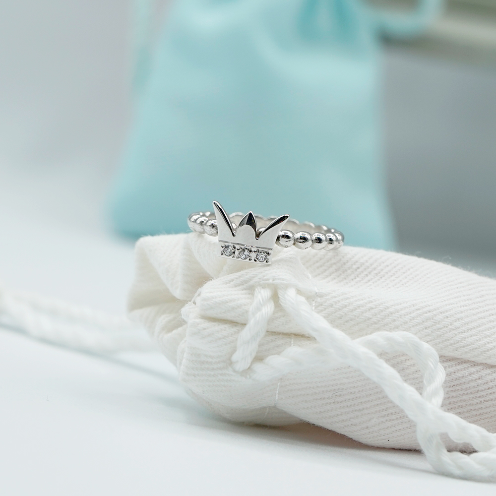 Sortija mini con corona de la línea Sed de Joyas exclusiva de Joyería Gomar. Sortija en plata rodiada y circonitas.