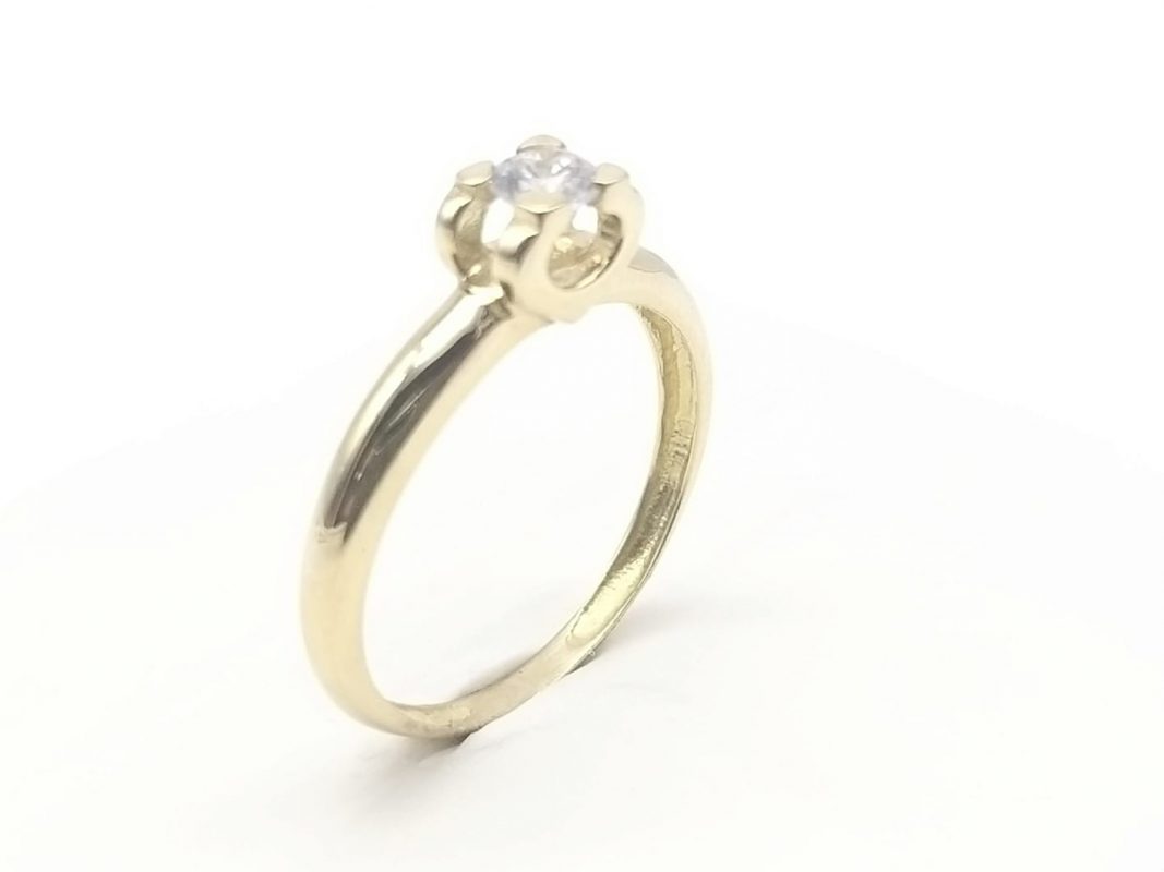 Sortija en oro 18 ktes tipo solitario con circonita de 3,5mm montada en garras con forma de corazón.