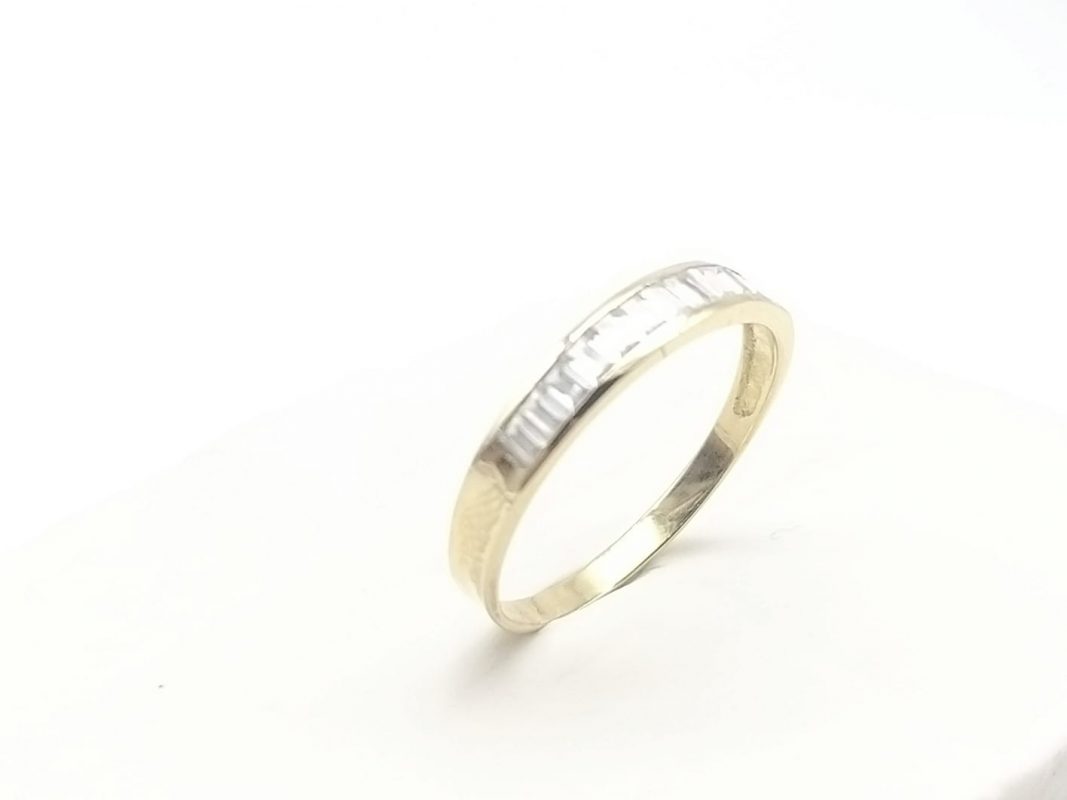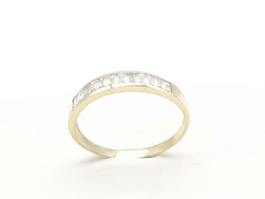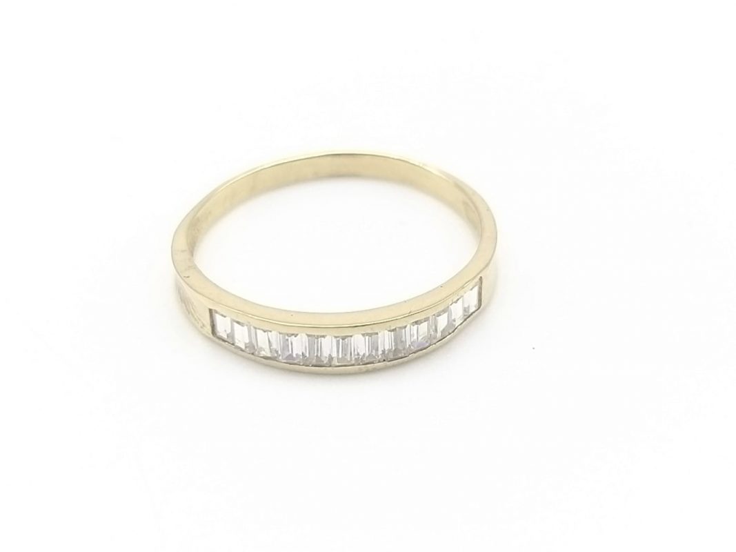 Sortija en oro de 18 ktes, con carril central en piedra tipo baguettes.